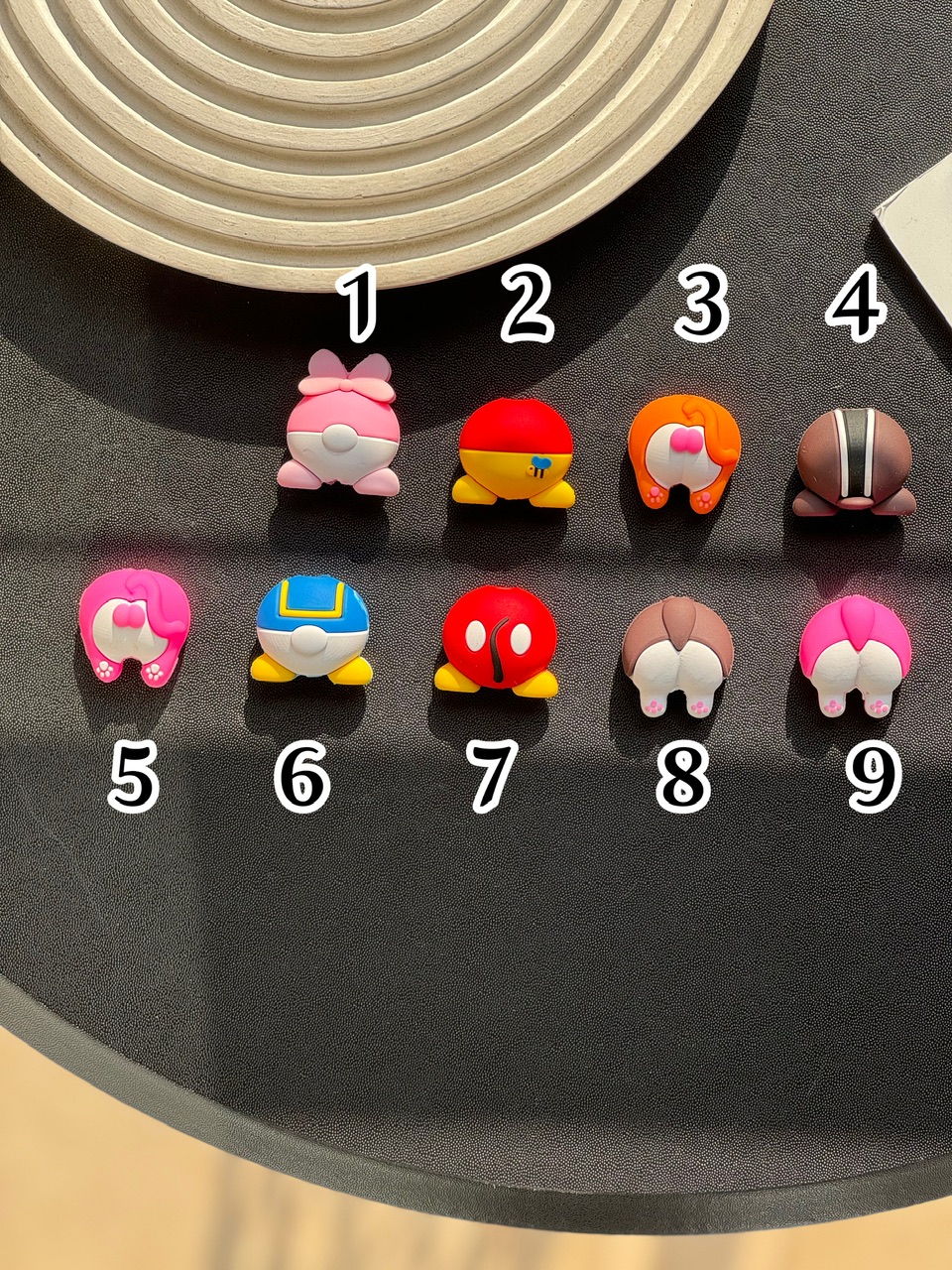 5-خوک صورتی, 7- میکی موس پسر, 6- اردک پسر آبی, 1-اردک صورتی, 2-پو زرد, 3-ببر نارنجی, 4-آهو قهوه ای بامبی