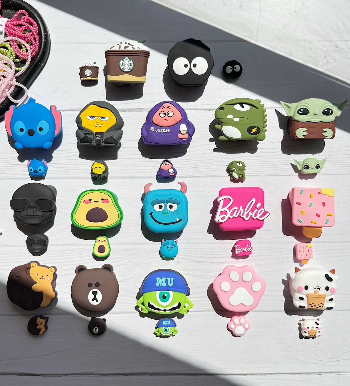 16-پنجه, 1-استارباکس قهوه ای, 10-سالیوان, 11-باربی, 12-بستنی, 13-خرس بیسکوییتی, 14- خرس قهوه ای, 15- مایک, 17-گاو سفید, 2-هپل ساده, 3-استیچ, 4-باب, 5-پاتریک, 6-دایناسور برقی, 7-یودا, 8-اسکلت, 9-آواکادو