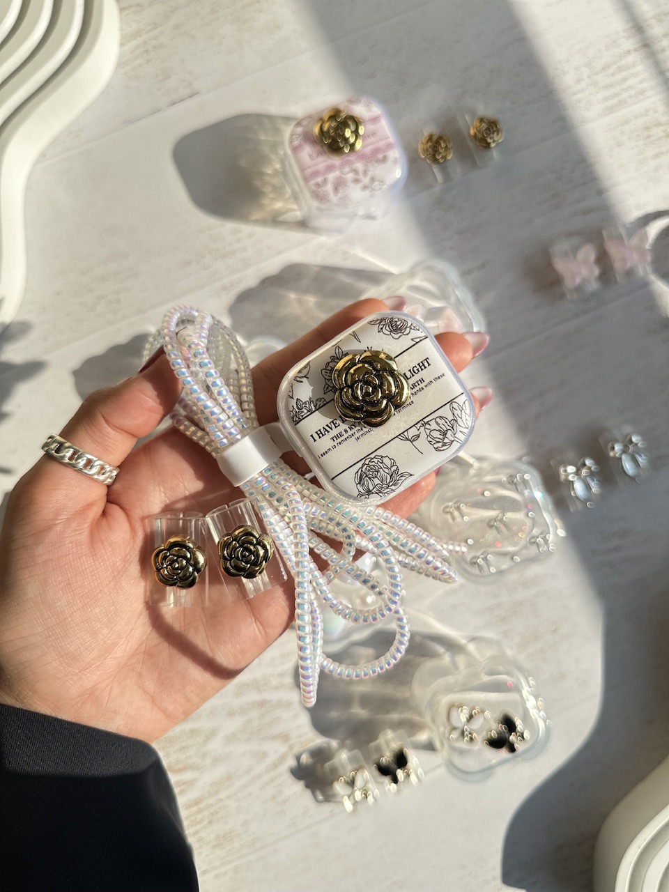 1-گل طلایی زمینه کرم, 3-قلب دفرمه, 4-پروانه صورتی, 5-قلب هولوگرامی, 2-گل طلایی زمینه صورتی, 7-پروانه سفید مشکی, 6-پاپیون اکلیلی