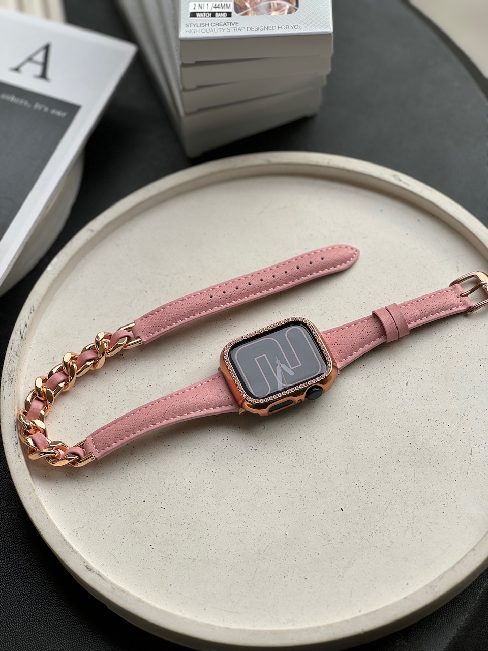 بند اپل واچ چرم کارتیر سانتوس همراه با گارد نگین دار (کدw5008)